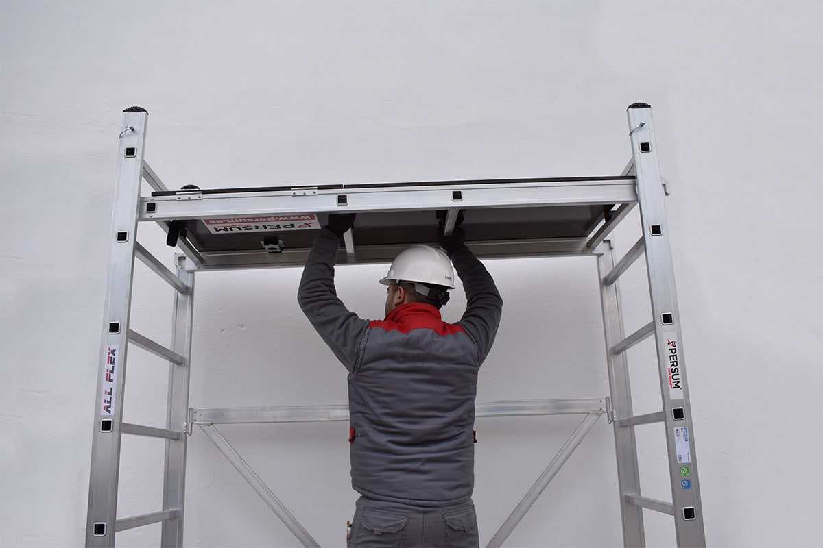 El andamio modular All Flex es la solución perfecta para profesionales que realizan trabajos en altura. Con un montaje rápido y sencillo, este andamio plegable pertenece al Grupo de andamios clase 3, ofreciendo la máxima seguridad.