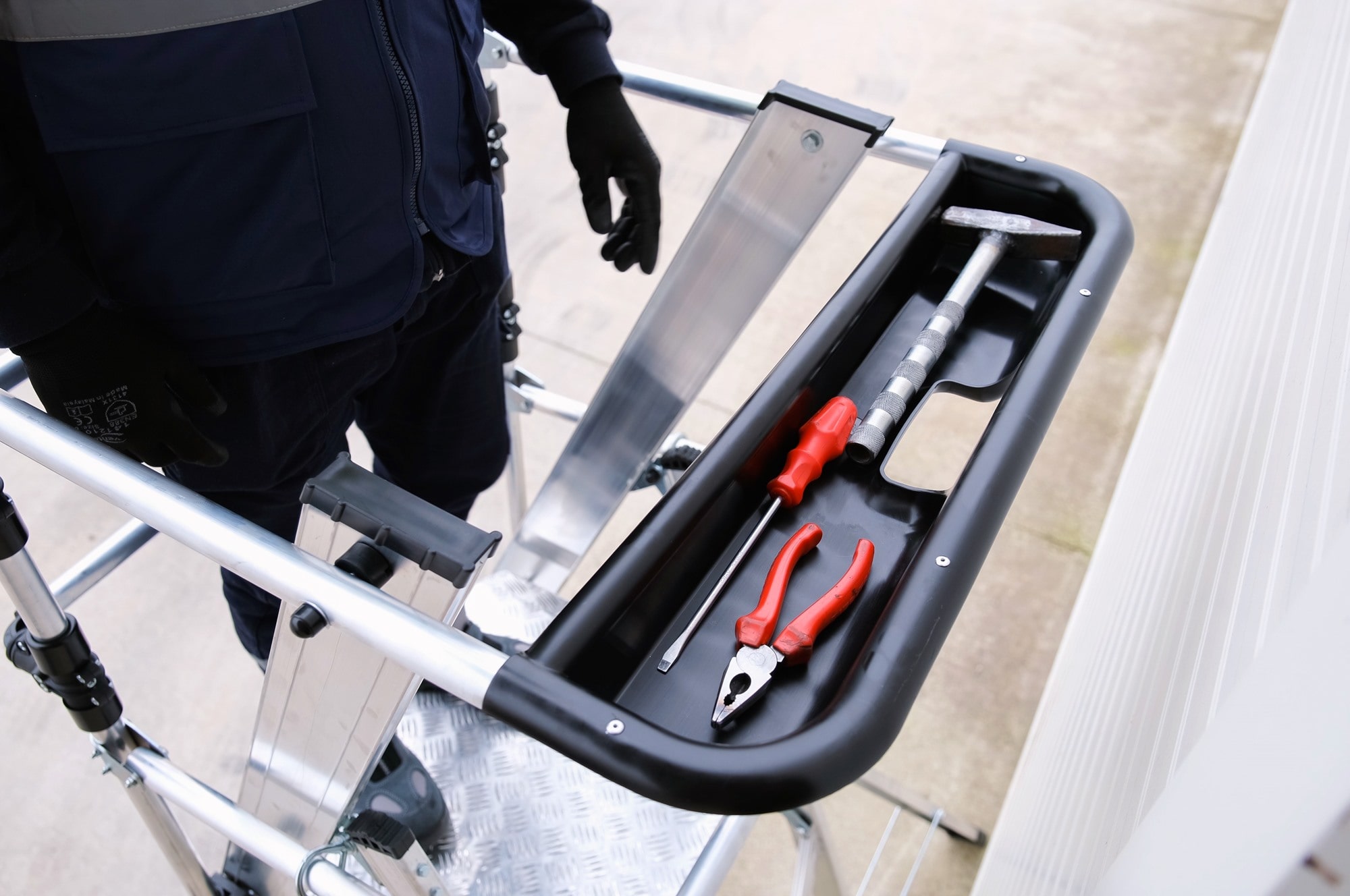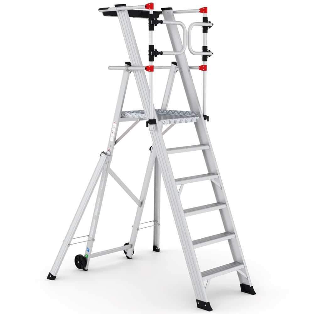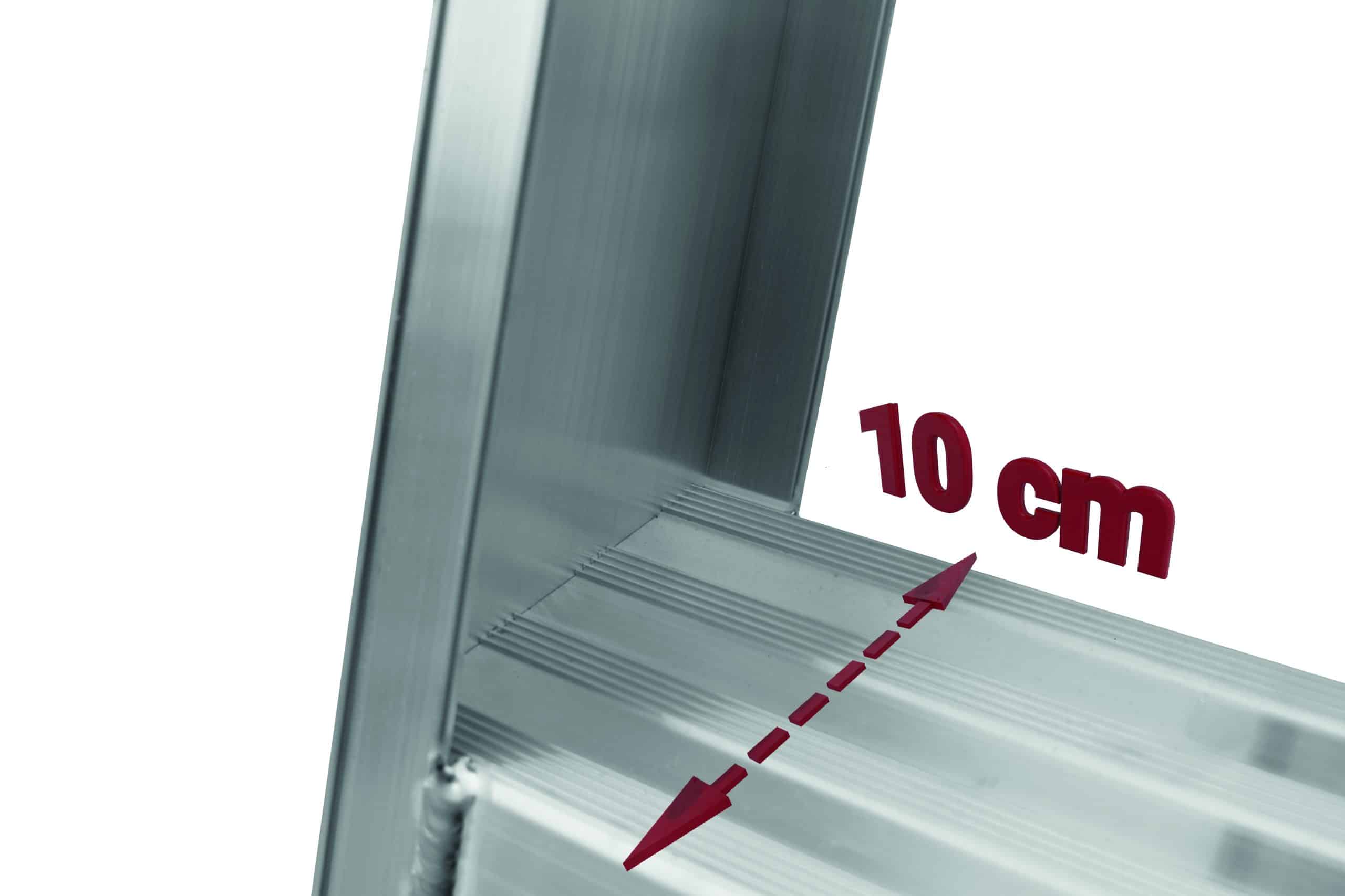 La plataforma de trabajo, con unas dimensiones de 51 x 56 cm, ofrece un amplio espacio para realizar tus tareas con comodidad. Los peldaños anchos reforzados, con una superficie antideslizante de 10 cm, brindan estabilidad y seguridad en cada paso. La estructura soldada asegura la resistencia y durabilidad del producto. Además, nuestro sistema de plegado seguro permite un fácil traslado y almacenamiento compacto. Con una inclinación de subida de 68°, esta plataforma se adapta a diferentes entornos de trabajo. Con una carga máxima de 150 kg, podrás llevar contigo todo el equipo necesario. Elige nuestra plataforma de aluminio con puertas abatibles para trabajar con confianza y comodidad.