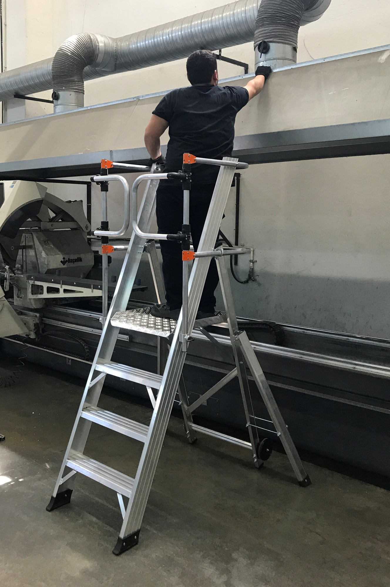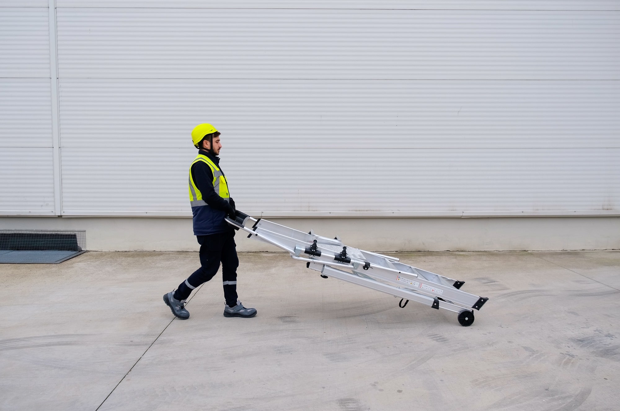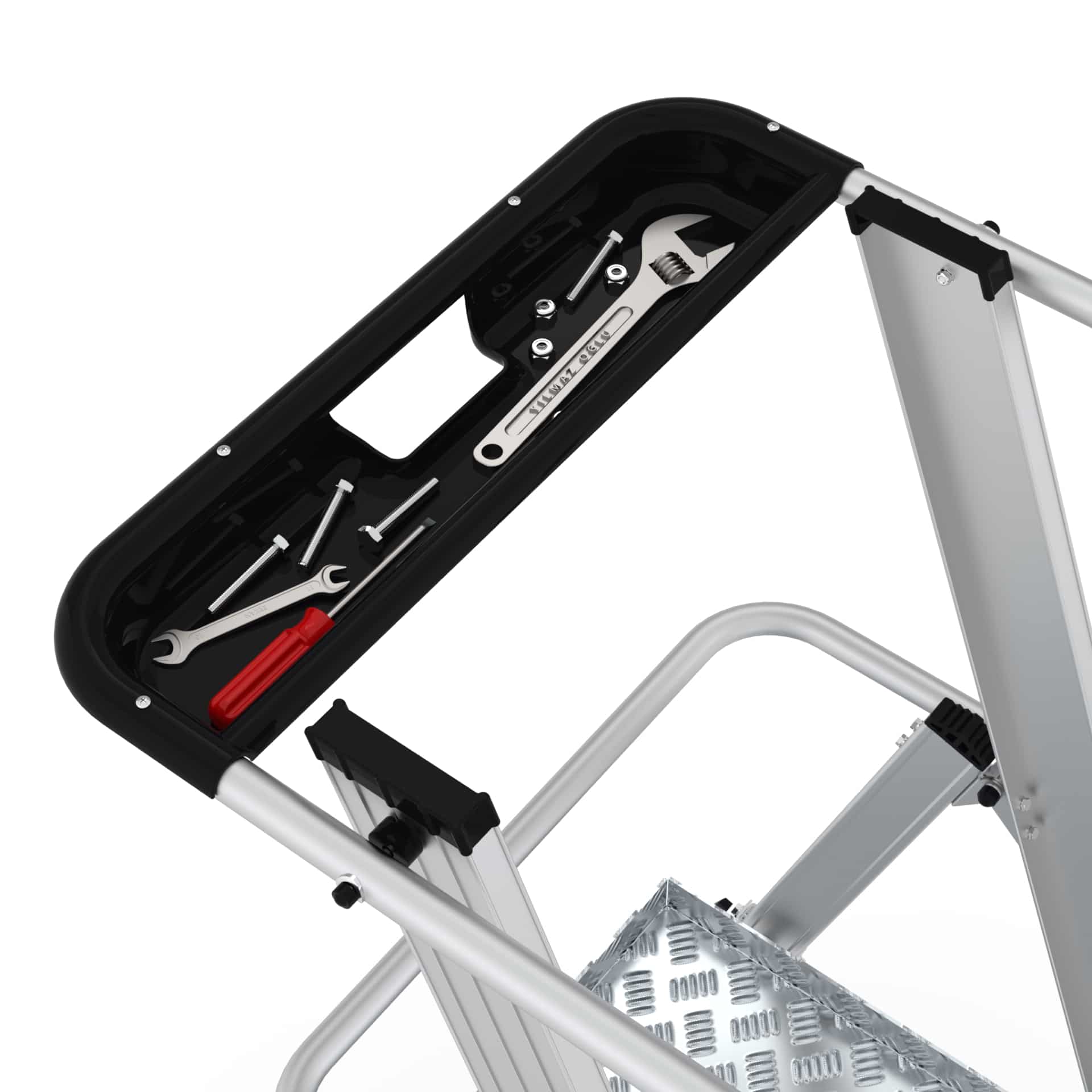 La plataforma de trabajo, con unas dimensiones de 51 x 56 cm, ofrece un amplio espacio para realizar tus tareas con comodidad. Los peldaños anchos reforzados, con una superficie antideslizante de 10 cm, brindan estabilidad y seguridad en cada paso. La estructura soldada asegura la resistencia y durabilidad del producto. Además, nuestro sistema de plegado seguro permite un fácil traslado y almacenamiento compacto. Con una inclinación de subida de 68°, esta plataforma se adapta a diferentes entornos de trabajo. Con una carga máxima de 150 kg, podrás llevar contigo todo el equipo necesario. Elige nuestra plataforma de aluminio con puertas abatibles para trabajar con confianza y comodidad.