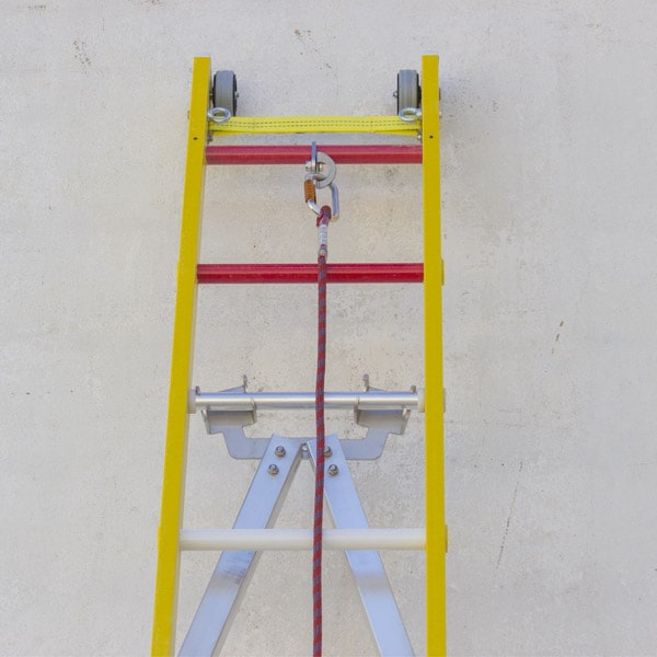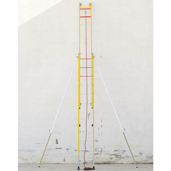 La escalera está equipada con tornillería y herrajes en acero inoxidable, lo que asegura su durabilidad y resistencia a la corrosión. Además, al igual que el modelo Volta Safe Pro 3, cuenta con ruedas de deslizamiento para facilitar su movimiento en fachadas y rodillos entre los tramos para evitar el desgaste de los perfiles. Las patas regulables en altura permiten adaptarla a diferentes tipos de terreno y necesidades de trabajo.