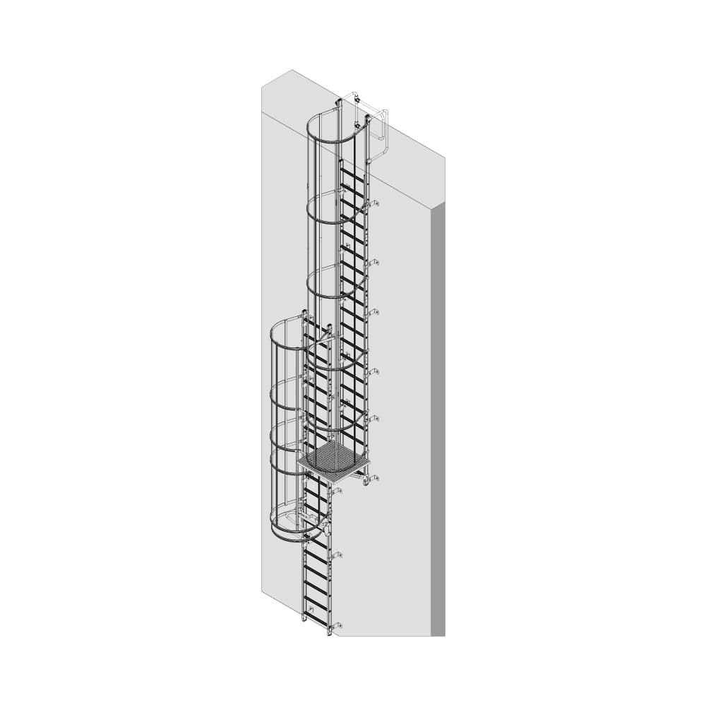 Escaleras de crinolina con protección dorsal o jaula.
