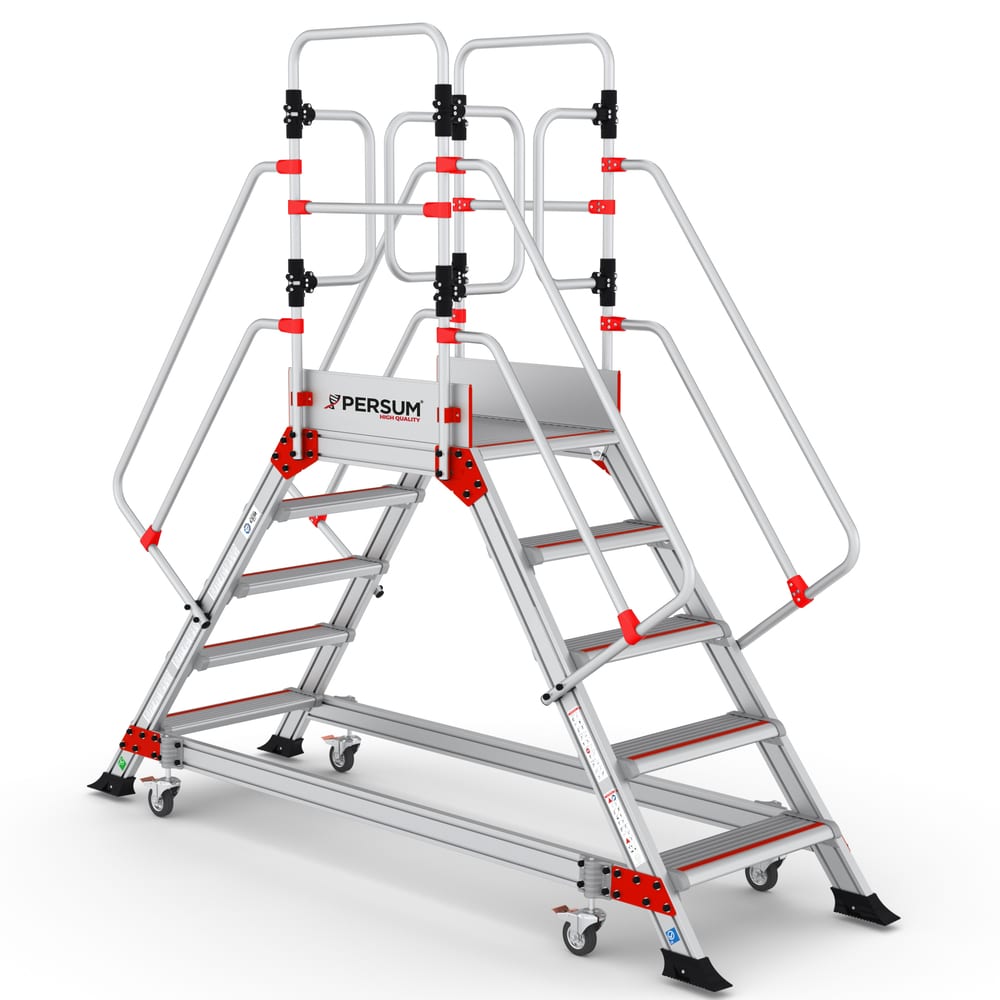 Nuestra plataforma industrial de aluminio EPC con doble subida es la elección perfecta para aquellos que buscan eficiencia y seguridad en sus trabajos. Diseñada con características excepcionales, esta plataforma ofrece un acceso seguro y cómodo a diferentes alturas de trabajo. Equipada con puertas abatibles Safe Return. La plataforma de trabajo de 60 x 75 cm proporciona el espacio necesario para llevar a cabo las tareas de manera cómoda y eficiente en 360º. Además, las ruedas escamoteables con freno facilitan el transporte y la movilidad, asegurando la estabilidad durante su uso.