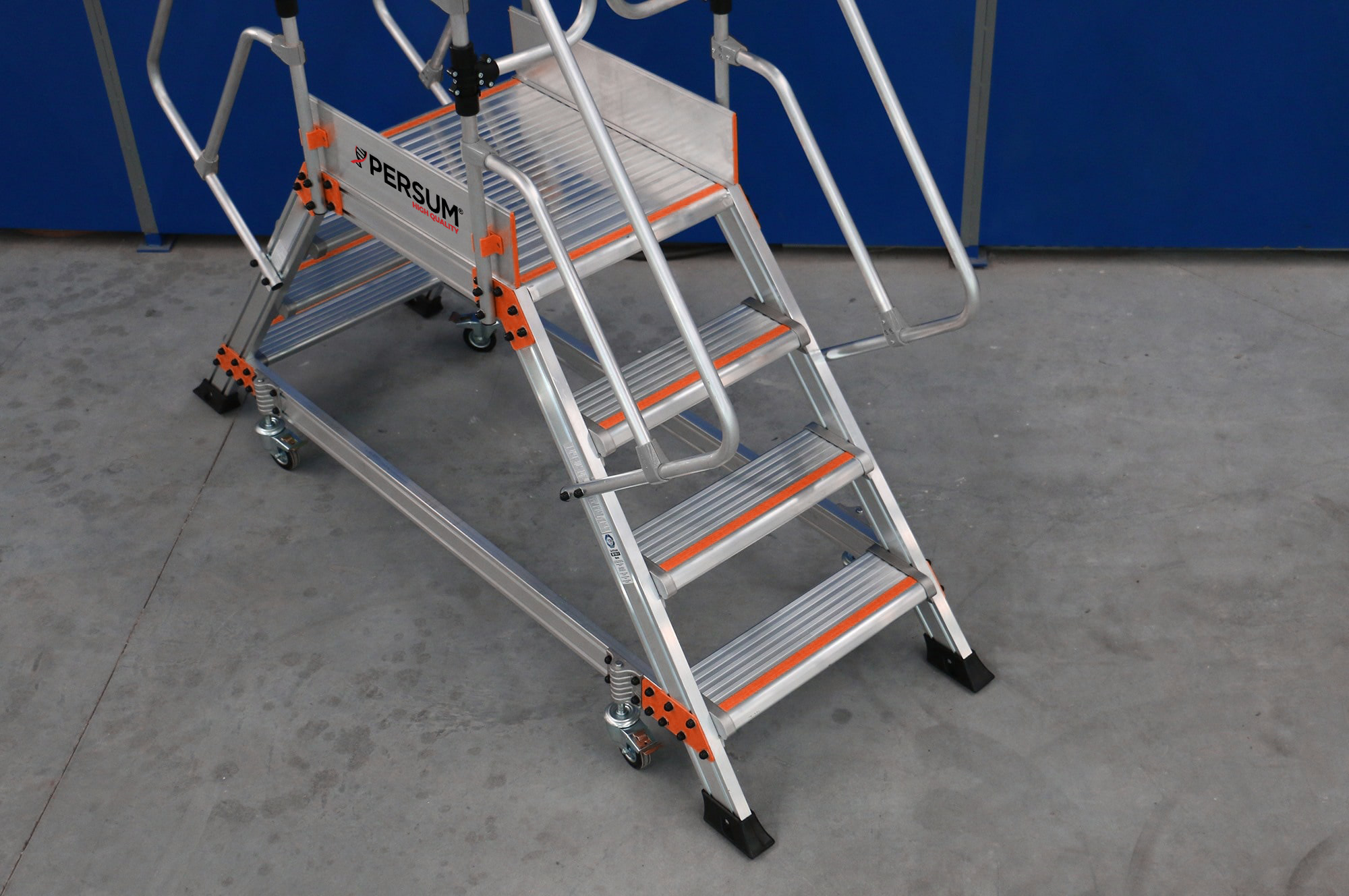 Los peldaños amplios antideslizantes de 18 cm de ancho, con línea roja reflectante de seguridad, brindan una superficie de apoyo segura y visible, incluso en condiciones de baja visibilidad. Los tacos de goma blanda antideslizante mejoran aún más la estabilidad y evitan deslizamientos no deseados, brindando una base segura en cada tarea.
